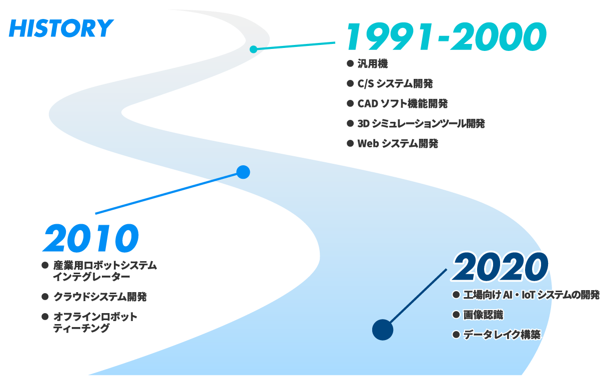 SUNBITは創業以来、生産現場やオフィスの業務改善に寄与するシステムなど、ハードからソフトまでの幅広い領域の技術を身につけています。