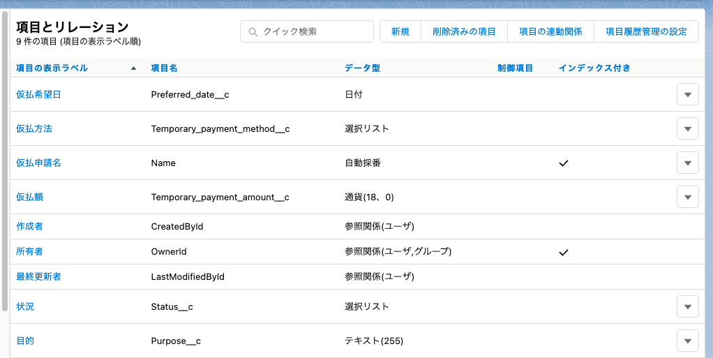 | カスタムオブジェクト | 独自で作成するオブジェクト(仮払申請、休暇申請など) |