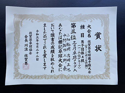 | 大会 | 佐賀県ラージボール卓球選手権大会(団体の部) |