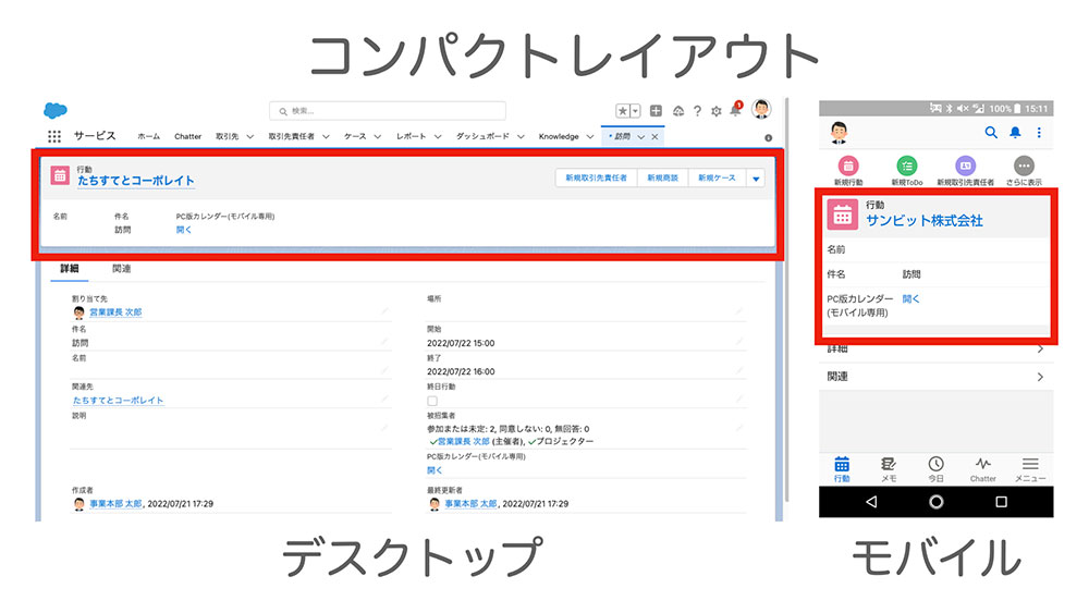 Salesforce には、通常のレイアウトとは別に、コンパクトレイアウトが存在します。