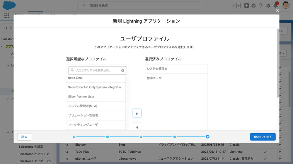 アプリケーションを表示し、プロファイルを選択して、「保存して終了」をクリックします。
