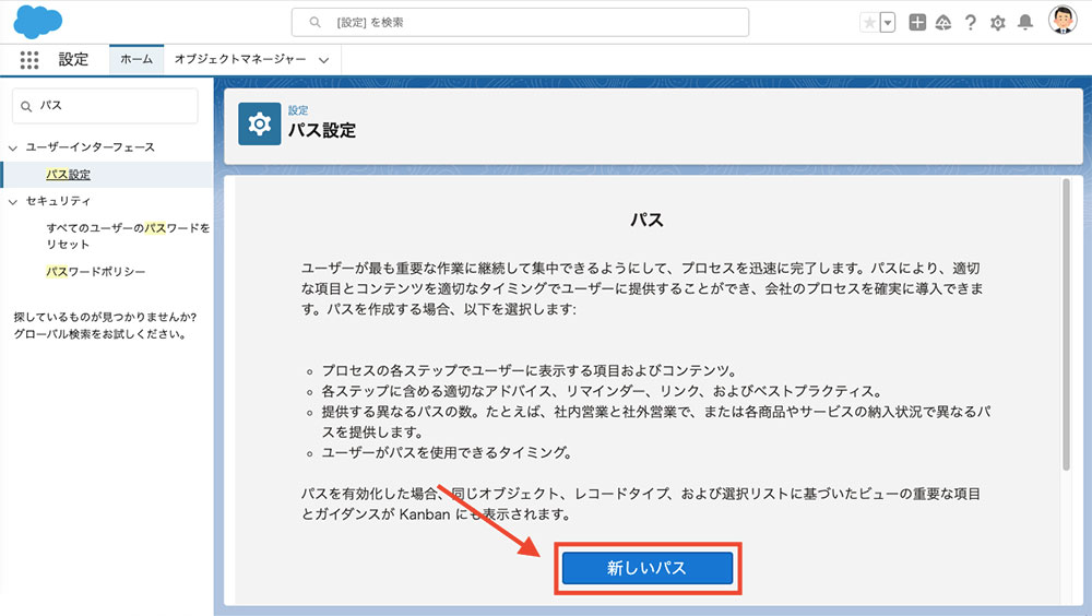 「新しいパス」をクリックします。