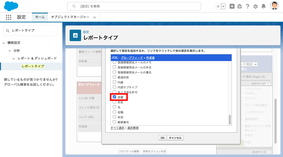 このように複数のレポートタイプを編集する必要がないため、カスタム項目で作ったほうが早いケースもあります。