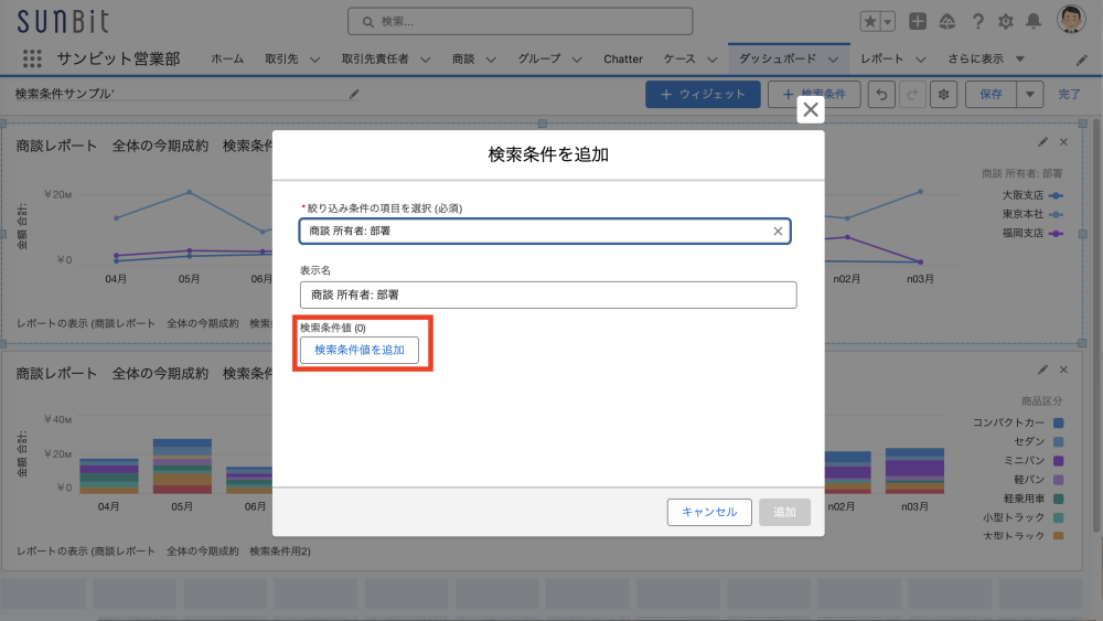 Salesforce のダッシュボードの機能 〜ダッシュボードの検索条件を設定しよう〜
