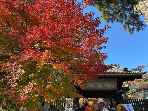 まず向かった武蔵寺では、赤く色づいた紅葉が青空に映えて、とても美しい光景でした。