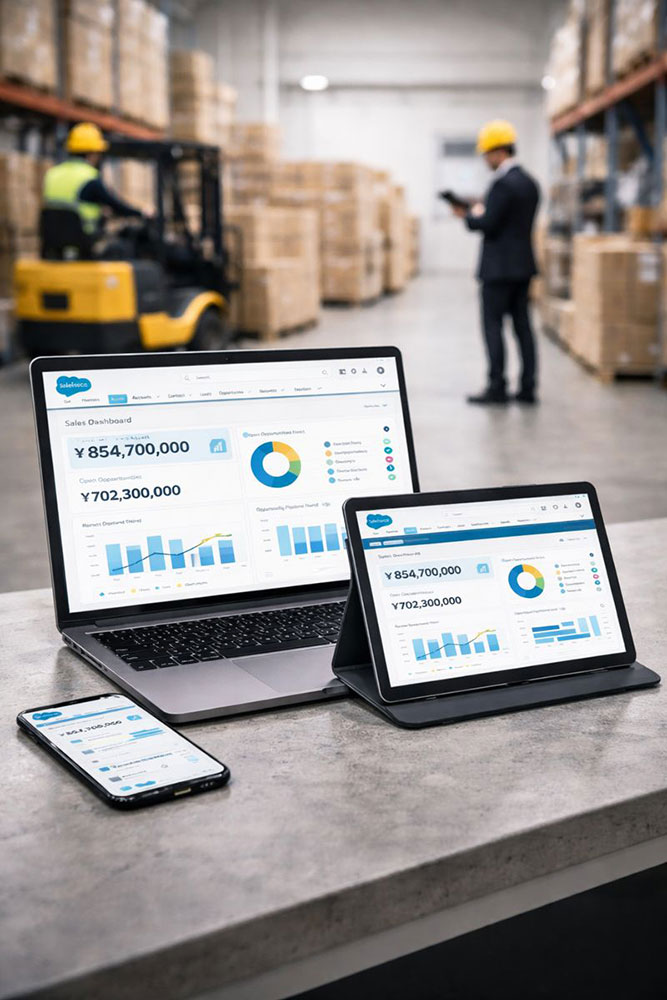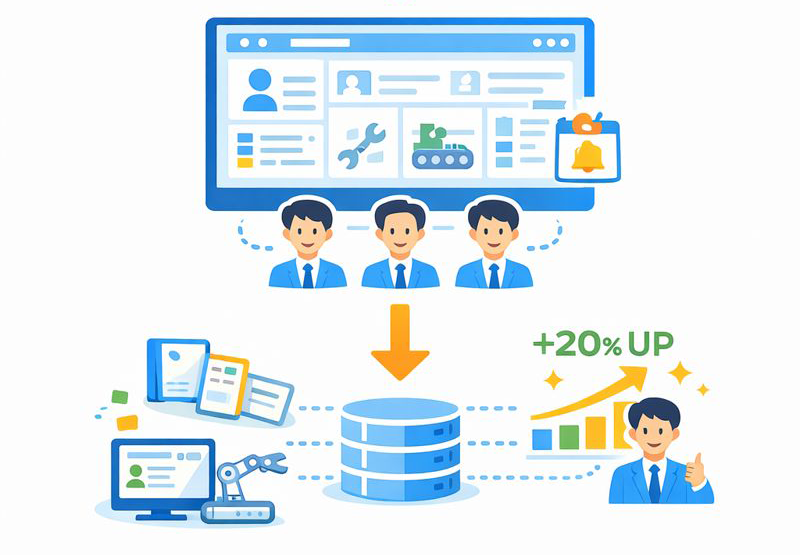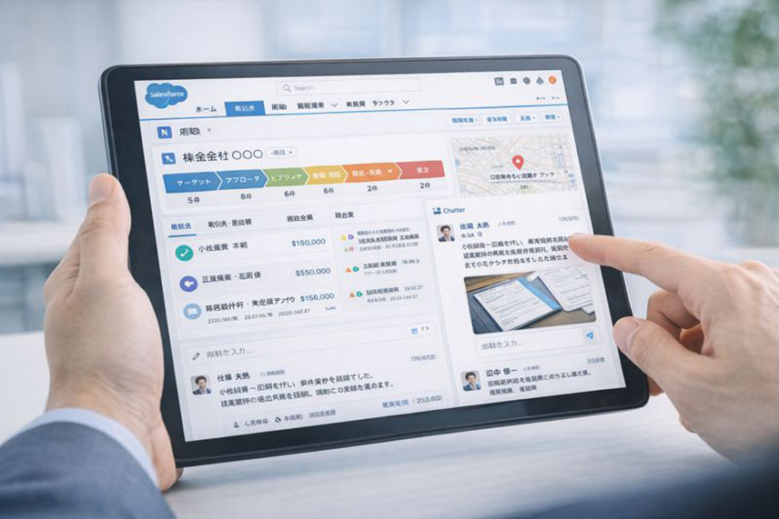 顧客管理・営業支援ソリューションは、顧客情報や商談履歴を一元管理し、営業活動を効率化する仕組みです。